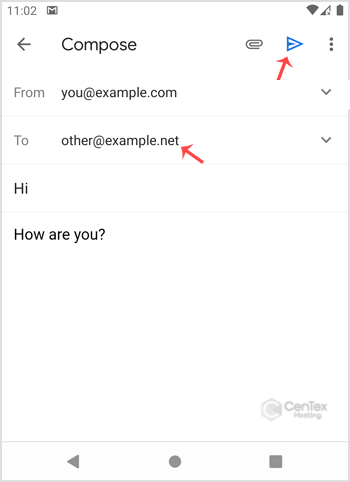 3. Enter the email address of the person to whom you want to send your email in the To Field, an email subject, and your message. Then click on the Send icon.