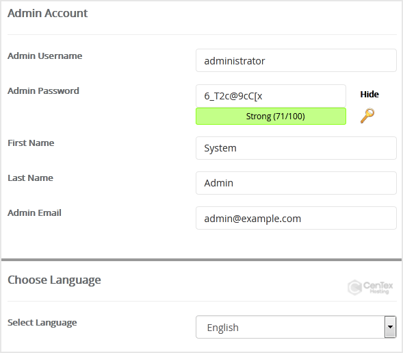 • Admin Username: Your new OctoberCMS username (for security reason do not use the Administrator or the Admin username.)