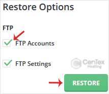 6. Scroll down to the end of the page and click the Restore Backup button.