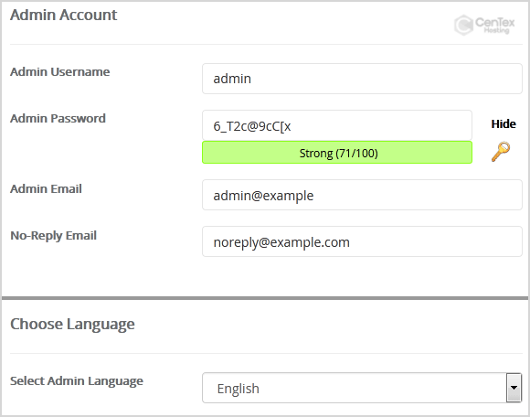 • Admin Username: Your new Geeklog username (for security reason do not use the Administrator or the Admin username.)