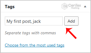 4. Scroll down to the Tags option and enter tags. If you wish to enter multiple tags, use a comma, and click on the Add button.