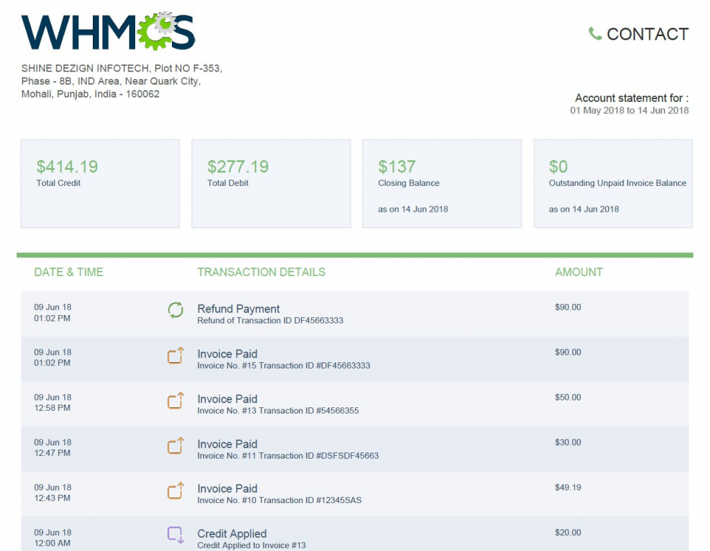 Earlier this feature was missing in the WHMCS services. But now the availability of Account Statement Module will help to send proper account statements to customers showing all their unpaid invoices and many more things.