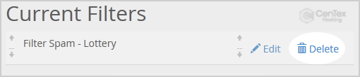2. Under Current Filters, you can see all of your existing filters. Click on Delete next to the appropriate filter name.