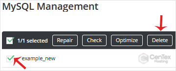 4. Click the Delete button, and a new window opens, asking you for confirmation. Click again on Delete to remove the database.