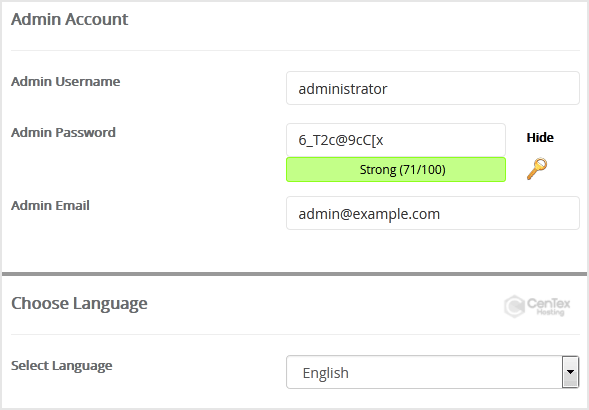 - Admin Username: Your new EggBlog username (for security reason do not use the Administrator or the Admin username.)