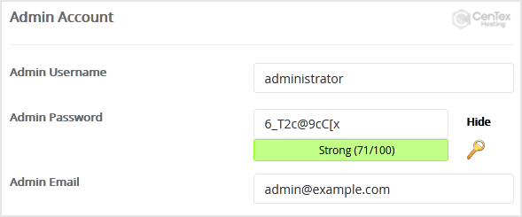 - Admin Email: Your e-mail address.