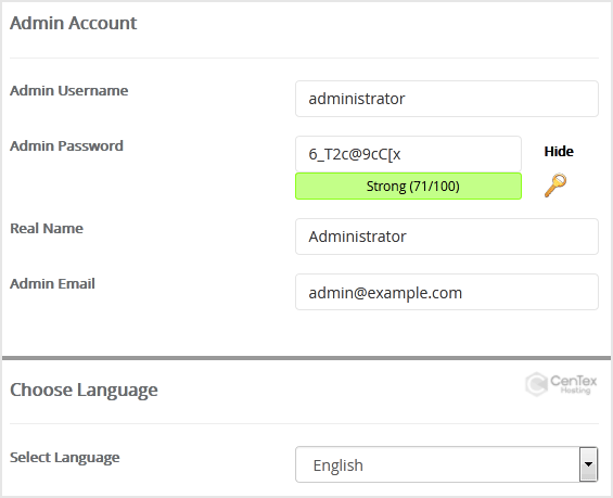 - Admin Username: Your new LifeType username (for security reason do not use the Administrator or the Admin username.)