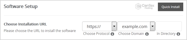 - Choose Installation URL: Choose the appropriate protocol/domain. Inside the “In Directory” field, should you want to install this in a directory, i.e., example.com/directory, enter the directory name. Otherwise, leave it blank to install in your main domain, i.e., example.com.