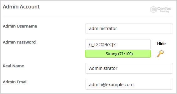 - Admin Username: Your new Saurus username (for security reason do not use the Administrator or the Admin username.)