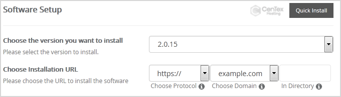 • Choose Installation URL: Choose the appropriate protocol/domain. Inside the “In Directory” field, should you want to install this in a directory, i.e., example.com/directory, enter the directory name. Otherwise, leave it blank to install in your main domain, i.e., example.com