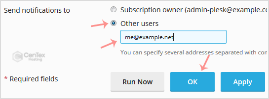 4. Scroll down to the Send notifications, choose other users, and then enter your email address in the email field.